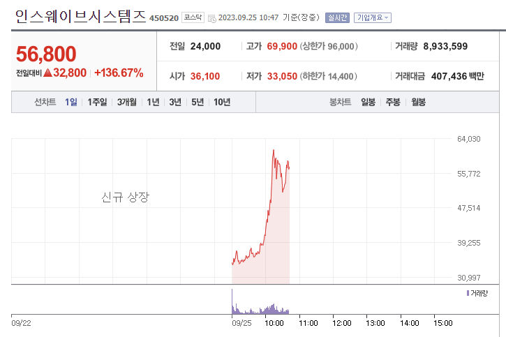 9월 25일에 신규 상장했기 때문에 52주 최고가, 52주 최저가는 정보는 존재하지 않습니다.